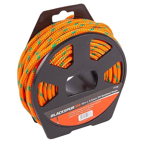 1 x orange 15 m flätad polypropylen på rulle – stark tjock kraftig utomhus trädgård camping presenning polysladd – av Blackspur