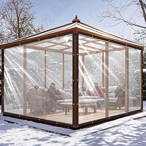 Sywlwxkq Tydliga presenningar kraftig vattentät 4 x 4 m, transparent presenning skydd vattentät, UV-blockerande skyddskåpa, klar poly presenning med öljetter