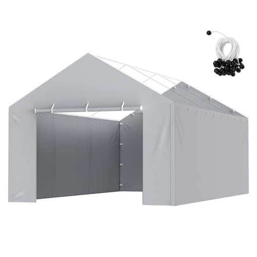 VEVOR Carport ersättande baldakinskydd, sidovägg 3,7 x 6,1 m, garagetält, presenning kraftig vattentät och UV-skyddad, enkel installation med bollfack, grå (topp och ram ingår inte)