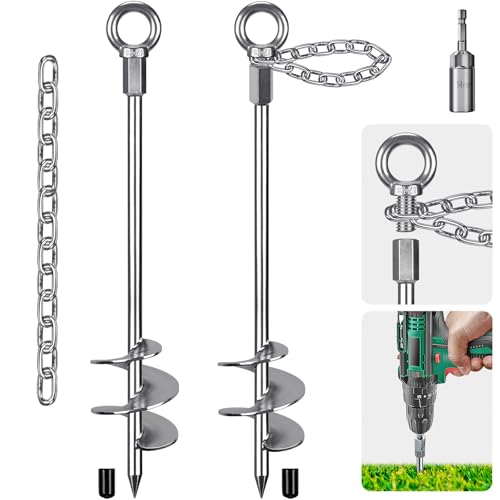 Insaga 45 cm (18 tum) helt svetsade studsmattpinnar med kedja, 3 tum bredare spiral markankare, 2 st studsmatteankare, kraftiga tältpinnar för campingtält, baldakiner, carports, skjul, gungset