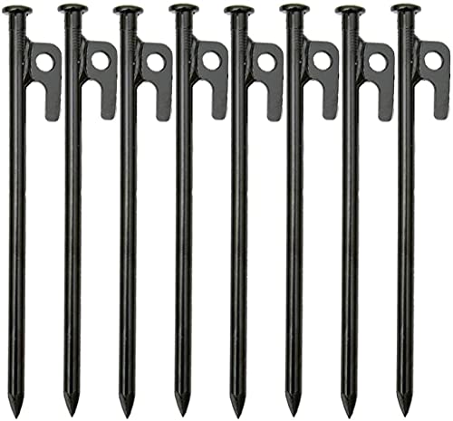 KAHEIGN Set med 8 kraftiga tältpinnar i smidesstål med krok och hål för utomhusbruk, resor, vandring, trädgårdsarbete, stor, stenig hård mark, 8 stycken
