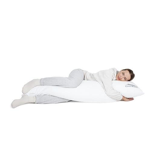 MKS Sidsovkudde med bomullsöverdrag 150 x 50 cm I Premium komfortkudde för sidosovare I med innerkudde | kramkudde I Oeko-Tex | vuxna sovkudde (vit)