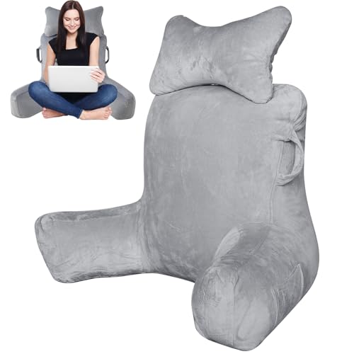 Läskudde för säng vuxen, 70 × 50 × 25 cm extra stor 2-i-1 läskudde med nackstöd, kramkudde ryggstöd kudde (ljusgrå, XL)