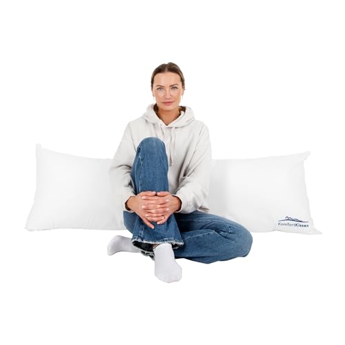 Sidosovkudde med bomullsöverdrag 150 x 50 cm I Premium komfortkudde för sidosovare I med innerkudde | Kramkudde I Oeko-Tex | vuxen sovkudde (vit)