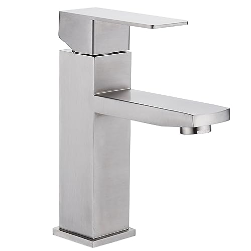 Faustina tvättställsarmatur badrum för handfat fyrkantigt vattenfall, enkelspaksblandare tvättställ armatur kran badrum handfatsarmatur badrumskran, borstat rostfritt stål