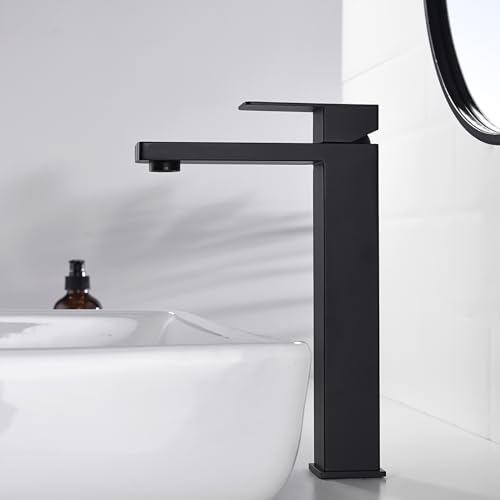 Decaura fyrkantig kran badrum tvättställsarmatur svart hög handfatsarmatur armatur armatur badrum med utloppshöjd 246 mm för toppmonterat tvättställ