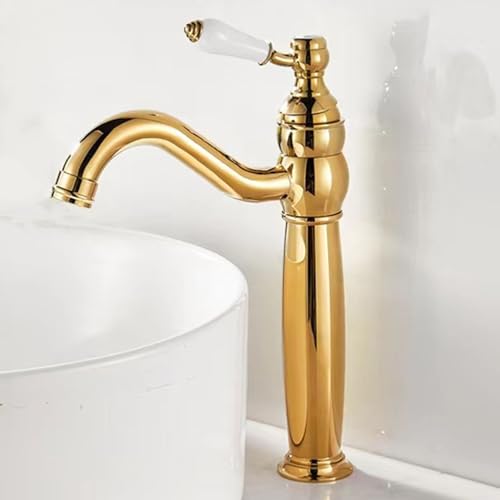 Badrum handfat blandare kran badrum handfat blandare kran vintage enkelt handtag, handfat blandare kran vridbar pip enkelt hål handfat kran guld hög