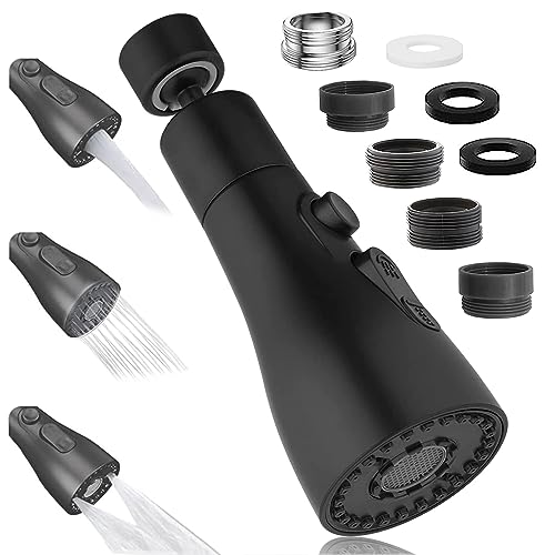 LUBEKAS Svängbar kranfäste svart, 360° vridbar med 3 lägen multifunktionell kran luftkran, vattenkran förlängning med 2 sprayfunktion, vattenbesparande för kran dusch kök badrum