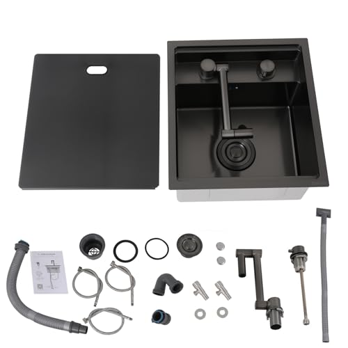 Diskbänk för underlag, platsbesparande osynligt handfat med lock, handfat rostfritt stål med vikbar kran, 1 handfat inbyggd diskbänk, för kök, bar, husvagn, svart