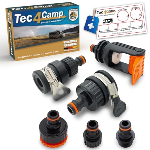MaJoCompTec® ALLCONNECT universell kran anslutningssats, justerbar vattenkrananslutning för ytterkran utan gänga, husbil, husvagn, båt, adapter, set (vattentjuvset)