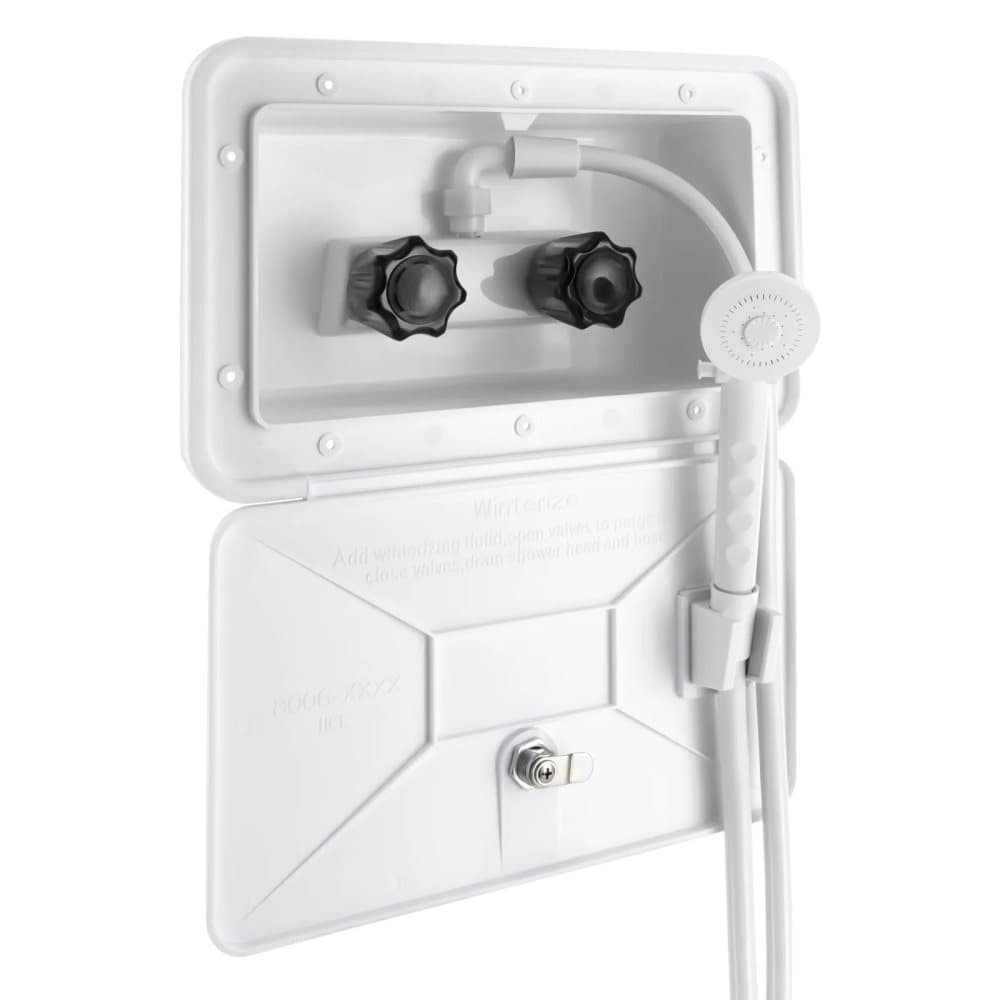 Duschbox-kit för husbil/husvagn & båt, vit, låslucka, kran, slang & duschhuvud, varm-/kallvatten