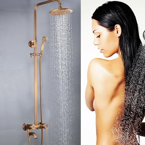 Duscharmatur komplett set guld duschset med regndusch antik mässing duschdusch dusch med slang och duschstång duschsystem med kran