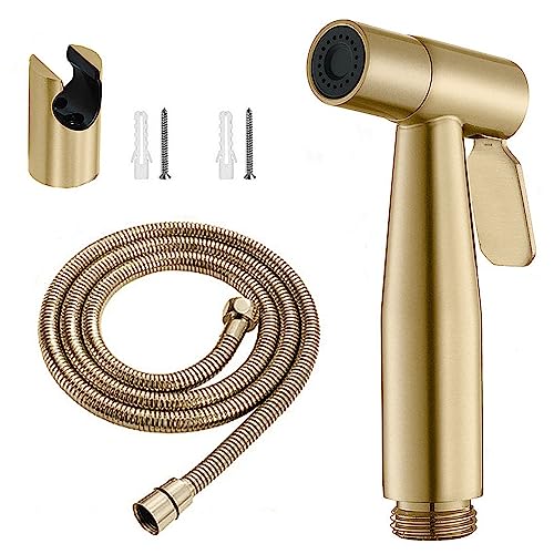 UZSYLE badrum totalt mässing guld färdig vägg monterad bidé kran toalett bidé dusch set bärbar bidé spray 1,5 m slang muslimsk toalett shattaf