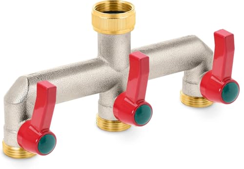 iBamso Trädgårdskran i mässing, 3/4 tum krandelare, slanganslutare, 3-vägs krankoppling med på/av-ventiler, kranadapter för hem, trädgård, utomhus