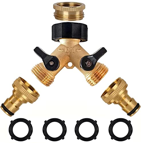 Mässing trädgårdsslang delare, 1/2 tum och 3/4 tum kran Y splitter slangkoppling med mässing trädgårdsslangkontakt, 2-vägs krankoppling med på/av-ventiler, kranadapter för hem, trädgård, utomhus