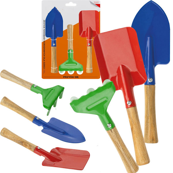 Trädgårdsredskapsset för barn, 3 st. spade och kratta för sandlek