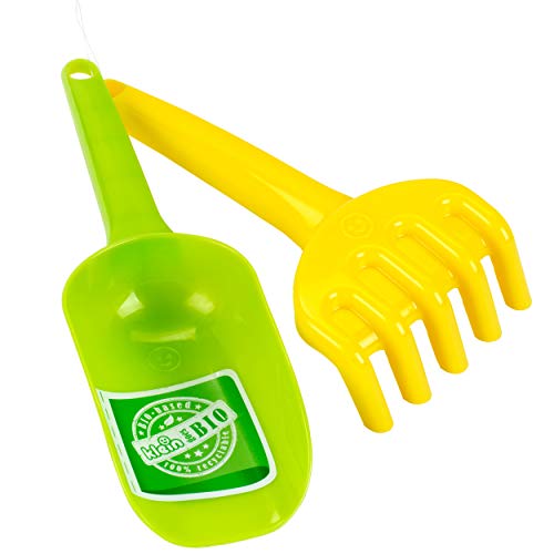 Theo Klein 7638 KLEIN goes BIO set med skopa och kratta | Färgglatt sandlådeset av bioplast | Med skyffel och kratta | Leksak för barn från 1 år