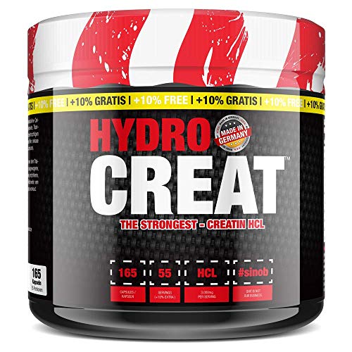 Hydro Creat Creatin HCL – 1 x 165 kapslar – 1 000 mg speciellt raffinerad kreatin HCl per kapsel – hög dos med 3 000 mg per dag – perfekt för muskelbyggande utan laddningsfas