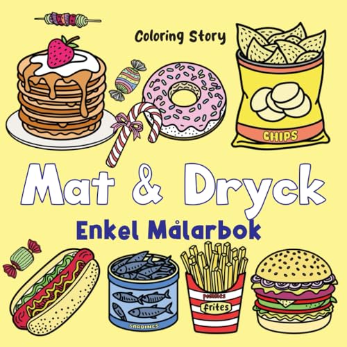 Målarbok med Mat & Dryck (Läckra Delikatesser): 51 Kraftfulla & Enkla Mönster för Vuxna och Barn | Enkla, Tjocka Linjer för Stressfri Färgläggning | ... Drycker (Avslappnande Kulinariska Kreationer)