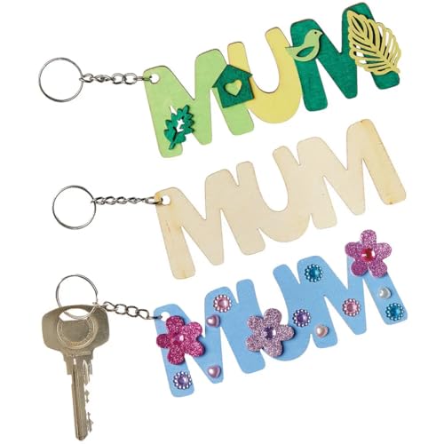 Baker Ross WA160 Tränyckelringar “MUM” - Förpackning med 6, Tränyckelringar att dekorera, Kreativa, personliga presenter till mamma