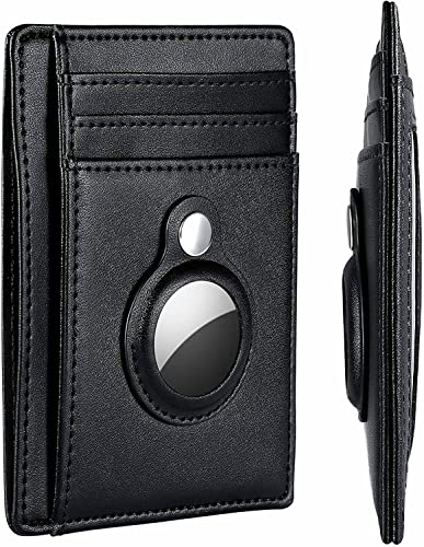 KF-Premium svart minimalistisk Airtag RFID-plånbok PU-läder kreditkort pengar hållare AirTag-skydd Air Tag-fodral, Svart, ledig