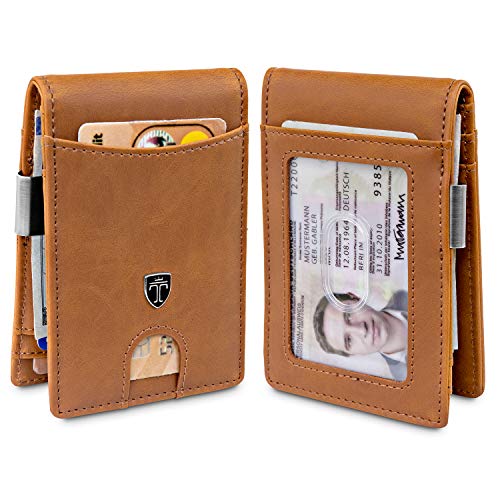 TRAVANDO Money Clip Wallet Atlanta Mens Front Pocket Slim RFID-blockering – kreditkort hållare – Mini Bifold (konjak brun)