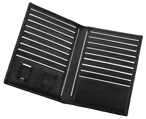 Alassio 42004 kreditkortsfodral, fodral av högkvalitativt läder, plånbok med 2 SD-kortplatser, 18 kreditkortsfack och 2 fack, businessfodral, svart, läderfodral ca 15 x 11 x 1 cm