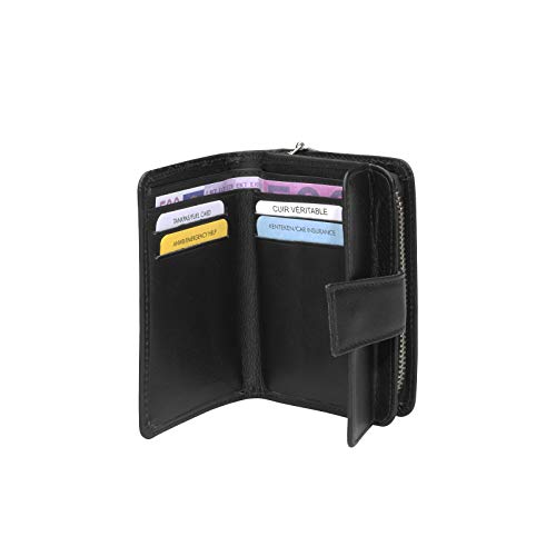 CLICKSAFE® Kreditkortsfodral med myntfack och sedelfack i svart hundläder med svart aluminiumkassaskåp och RFID-skydd (kortfodral, korthållare, smal plånbok)