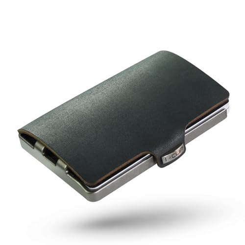ClickSafe® Kreditkortsfodral med myntfack och sedelfack av grått läderläder med grönt aluminiumkassaskåp och RFID-skydd (kortfodral, korthållare, smal plånbok), GRÅ, 10,0 x 6,5 x 2,5 cm