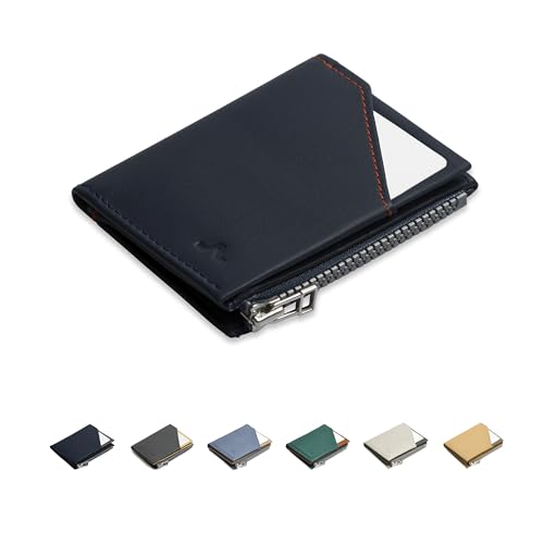 ROIK plånbok liten herr – kreditkortsfodral läder med RFID-skydd – smal plånbok män – 9 kort miniportmonnä för män – kompakt läderplånbok för män – dragkedja mynt, Blå-marinblå, 9,4 cm x 7,6 x 1,4 cm