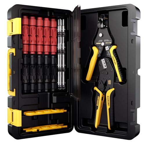 DxCRIMP Krymptång Solenergi Set, Lämplig för 2,5-6mm² solcellskabel - Crimptång Solenergi Set, Med 10 par svarta och röda solcellskabelkontakter + Krimpverktyg + Automatisk trådavdragare + skiftnyckel