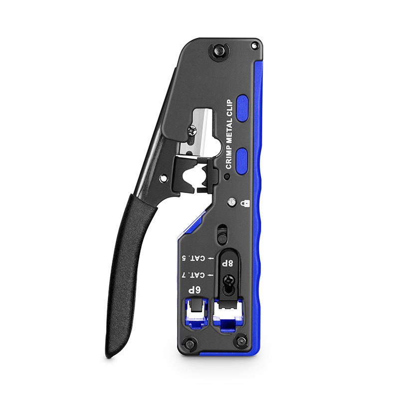 VCELINK GJ668BL RJ45 krimpverktyg, Ethernet krympverktyg för Cat5/Cat6/Cat7 RJ45-kontakt och RJ11/RJ12 telefonkontakt, med inbyggd kabelskalare och skärare