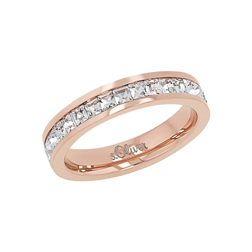 s.Oliver Ring i rostfritt stål, damringar, med kristall, rosa färg, levereras i presentförpackning för smycken, 2018552