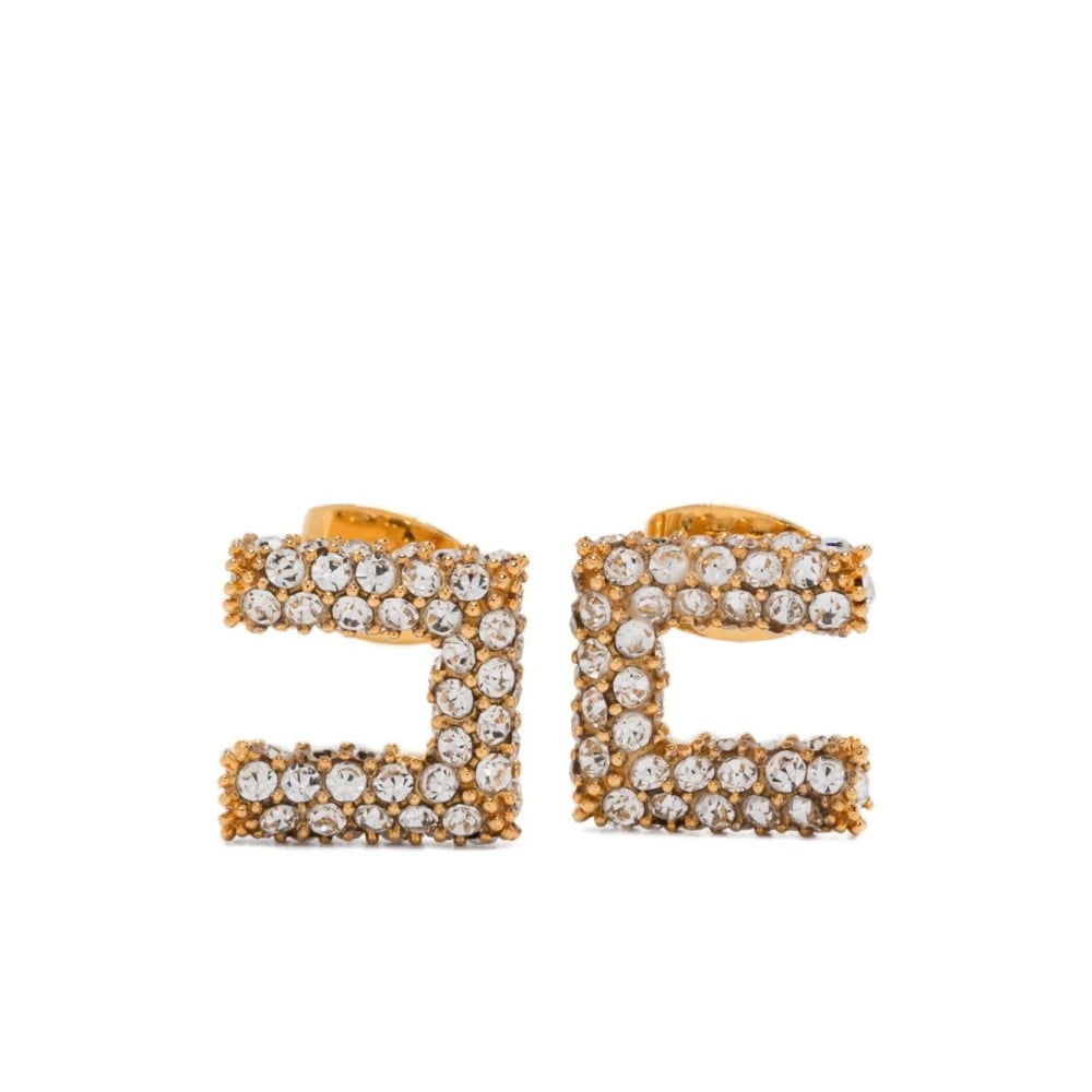 Elisabetta Franchi, Accessoarer , Dam, ONE Size, Kristall Fyrkantiga Örhängen Guld Färg