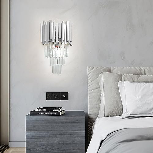 Modern Kristallvägglampa Lyxig, E14 Silver KristallväGg Sconce Ljus, K9 Kristall Vägglampa för Vardagsrum Sovrum KöK Hall Trappor Restaurang Hotellbelysning