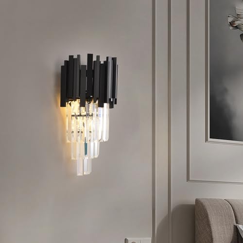Modern Kristallvägglampa Lyxig, E14 Svart KristallväGg Sconce Ljus, K9 Kristall Vägglampa för Vardagsrum Sovrum KöK Hall Trappor Restaurang Hotellbelysning