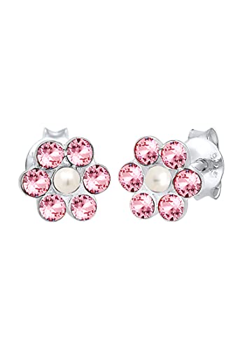 Elli Örhängen Elli damer örhängen barn blomma blommig med kristaller i 925 sterlingsilver, Sterlingsilver, kristall