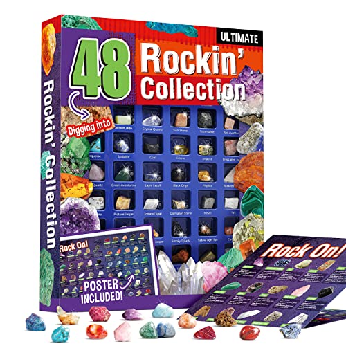 Byncceh 48 stycken ädelstens-set mineraler, stenar och kristaller upptäck samla helande kristaller present för barn geologi ametist pojkar och flickor