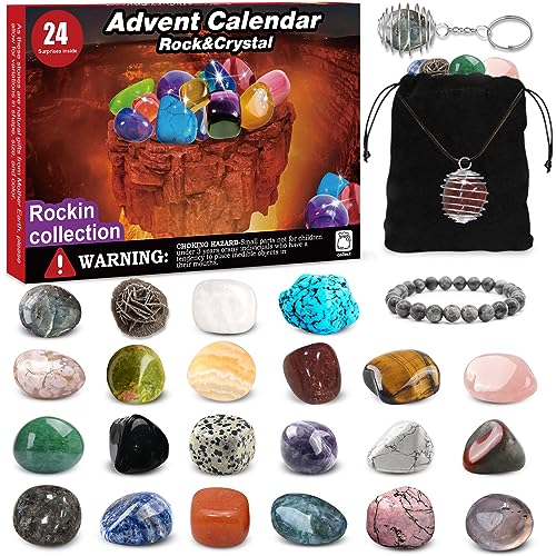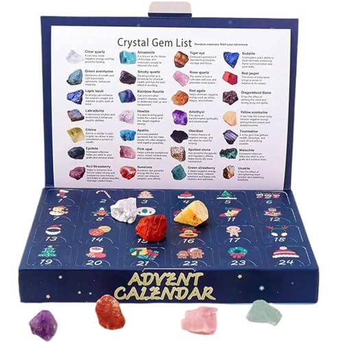 Whyzsjnclg Julkalender, julkalender 2024, 24 dagars jul nedräkningskalender, julkalender med utsökta kristaller, för barn stensamling, grov sten
