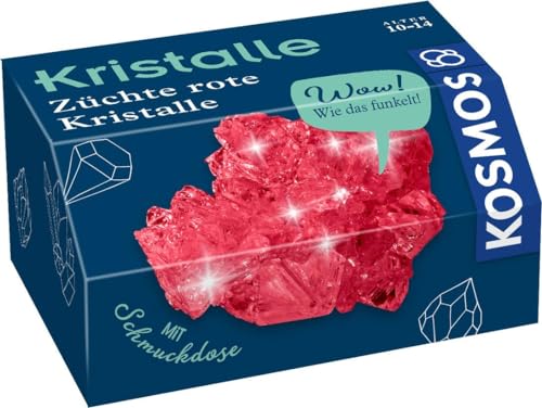 KOSMOS 657949 röda kristaller självodla experimentset för barn, experimentset för barn, komplett set för uppfödning inklusive liten smyckesburk, kristaller, souvenir för barn