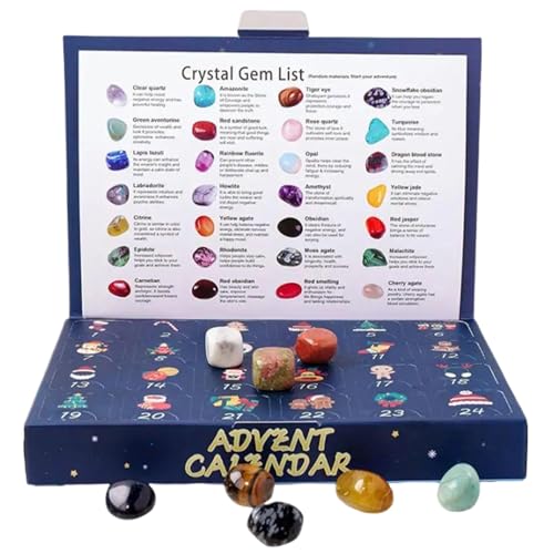 Whyzsjnclg Julkalender, julkalender 2024, 24 dagars jul nedräkningskalender, julkalender med utsökta kristaller, för barn stensamling, rullande sten