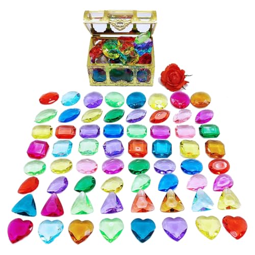 Bukezudang ädelstenar för barn – 64 stycken Akryldiamanter för barn, färgglada kristaller, skattjakt, perfekt som present till barnkalas och piratskatt, leksak för pojkar och flickor