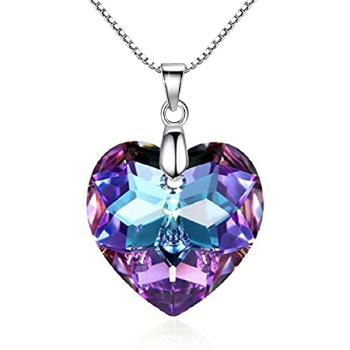 Crystalline Azuria Hängsmycke Halsband Lila Hjärta Kristaller Sterlingsilver Kvinnor's Smycken 18 inches