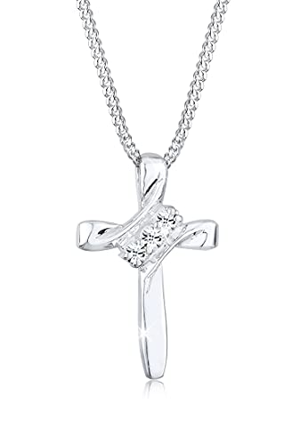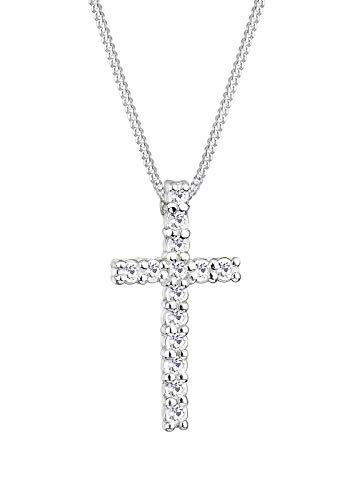 Elli halsband damer markibild kors med zirkonia kristaller i 925 sterlingsilver, 45 cm, fasettad slipning, Kubisk zirkonia