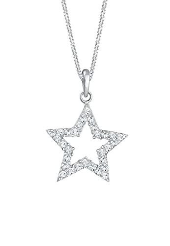 Elli Halsband dam stjärna berlock astro med kristaller i 925 sterlingsilver,fasettslipning