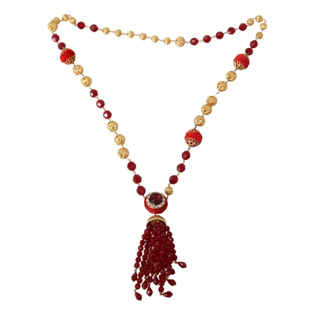 Dolce & Gabbana, Accessoarer , Dam, ONE Size, Guldfärgad mässing rött kristaller hänge opera kedja halsband