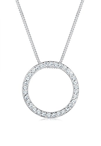 Elli halsband damer cirkel hänge trend med kristaller i 925 sterlingsilver, 45, fasettad slipning, Kristall