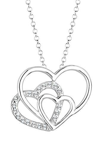 Elli Halsband dam trippel hjärta med kristaller i 925 sterlingsilver, 450, fasettslipning, kristall