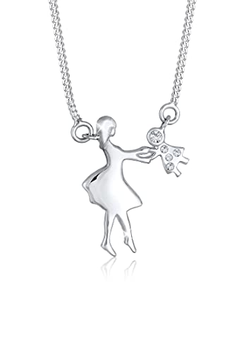 Elli halsband damer mamma barn kärlek med kristaller i 925 sterlingsilver, Sterlingsilver, Kristall