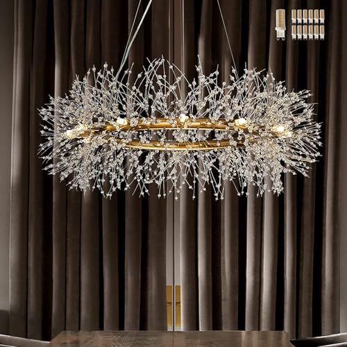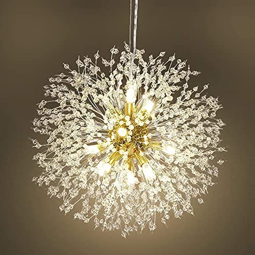 Kristallkrona, 12 ljus modern fyrverkeri ljuskrona, G9 gyllene maskros ljuskrona för matsal sovrum vardagsrum kök ö